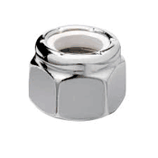 Hex nut with a nylon-filled collar, and a fine thread. When a screw reaches the collar, the threads and nylon form a tight, frictional fit, restricting movement of the screw when it is subjected to vibration.