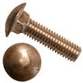 A round head bronze bolt with a square neck under the head, designed to keep the bolt from turning as a nut is tightened.
