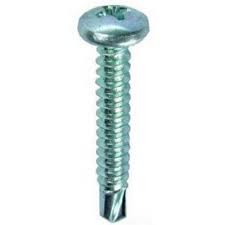 A tapping screw with spaced threads and a drill point which drills its own hole.